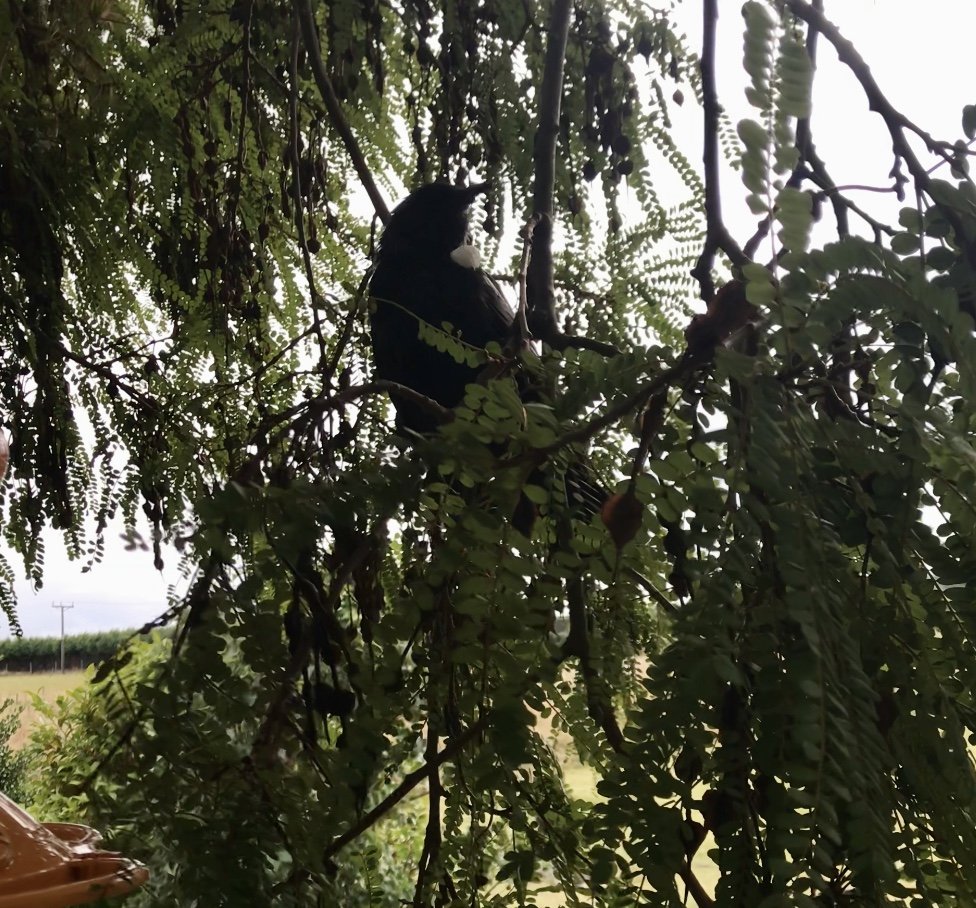 This summer, with the new verandah right next to it, cheeky Tui landed on the tree and sang out when the feeder was empty. They waited by the feeder whilst we refilled it with lovely, warm sugar water.