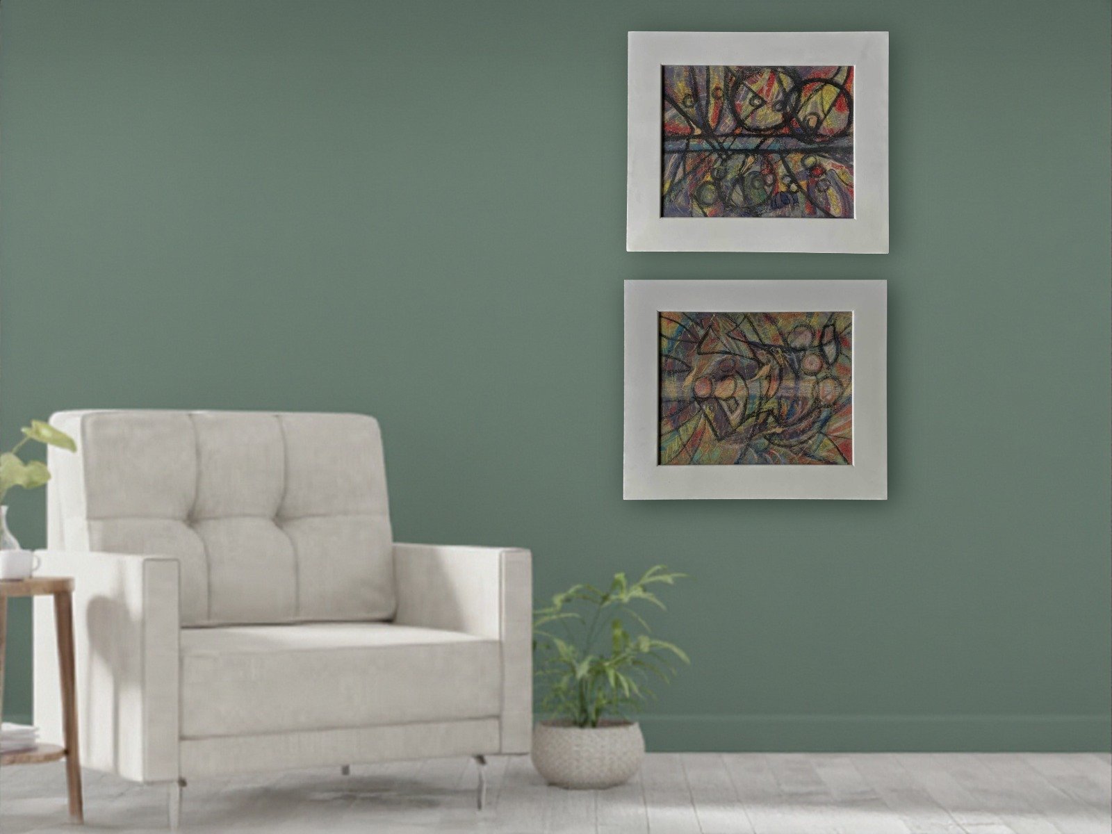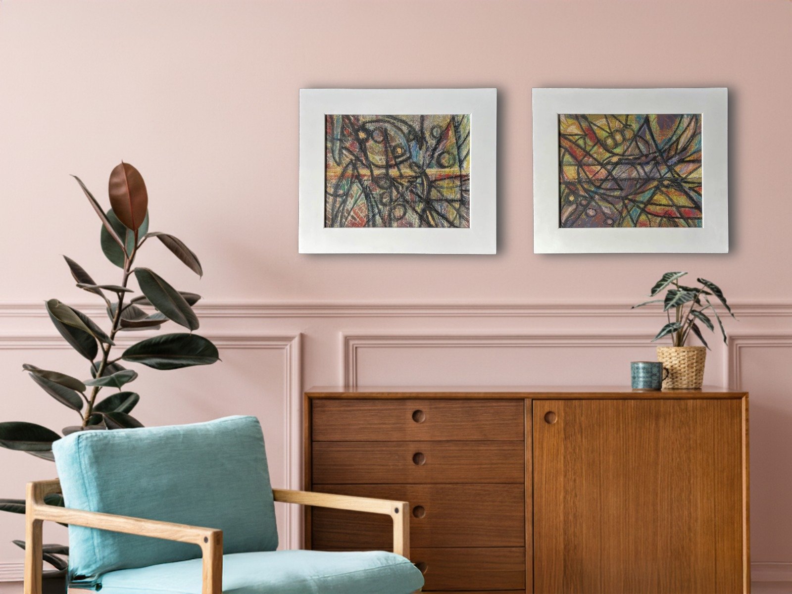 What delights me most is how my own colourful abstract paintings seem to dance with these palettes.The newly framed pieces from my Moving On collection, finished in fresh white moulding, feel especially alive and optimistic against both Ethereal and Elemental. The crisp white frames keep everything light and breathing. Therefore, allowing the joyful marks and flowing colours to add that extra spark of movement and hope. It’s exactly what “Moving On” means to me — stepping forward with lightness and possibility, even as the season gently slows us down.