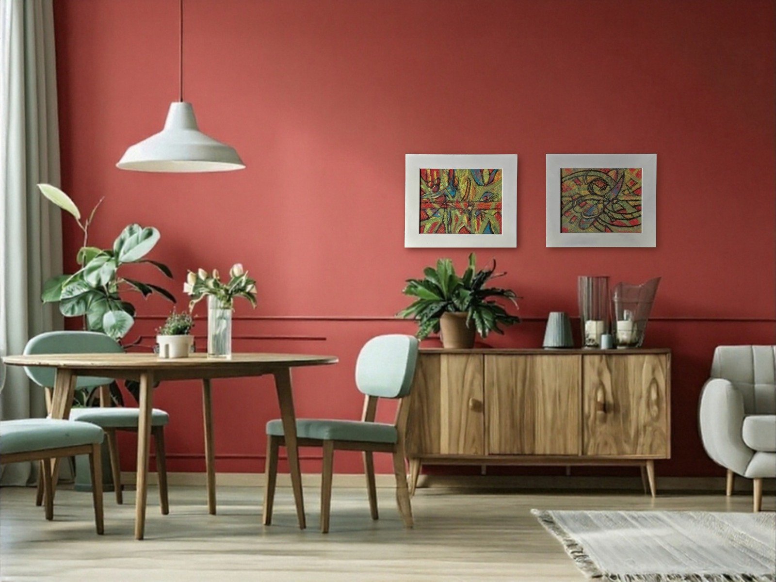 There’s something truly magical about seeing these pieces sitting confidently against these grounded, nurturing wall colours. The white moulding creates a clean, elegant edge that lets the energy inside each painting shine through beautifully.