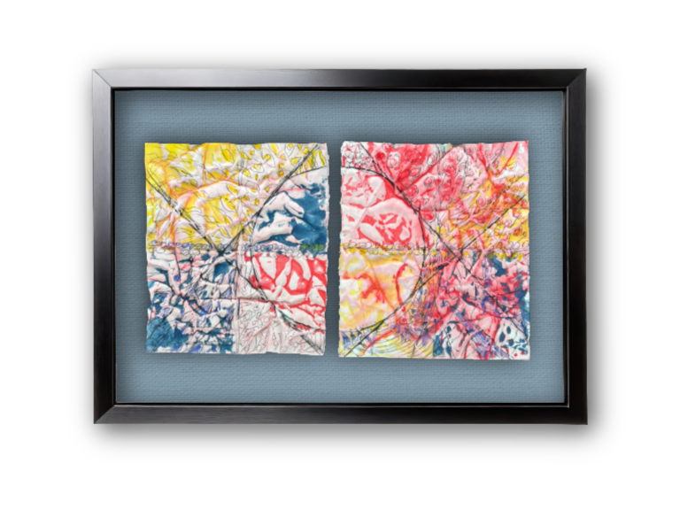 Let’s Paint the Town Red adds crackling, go-for-it texture and fun to your spaces.  I made these works principally with  inktense and oil stick on really crunchy paper, for real punch. Thereby, resulting in set of works that are decidedly distinct from the other Red Playground derivatives.