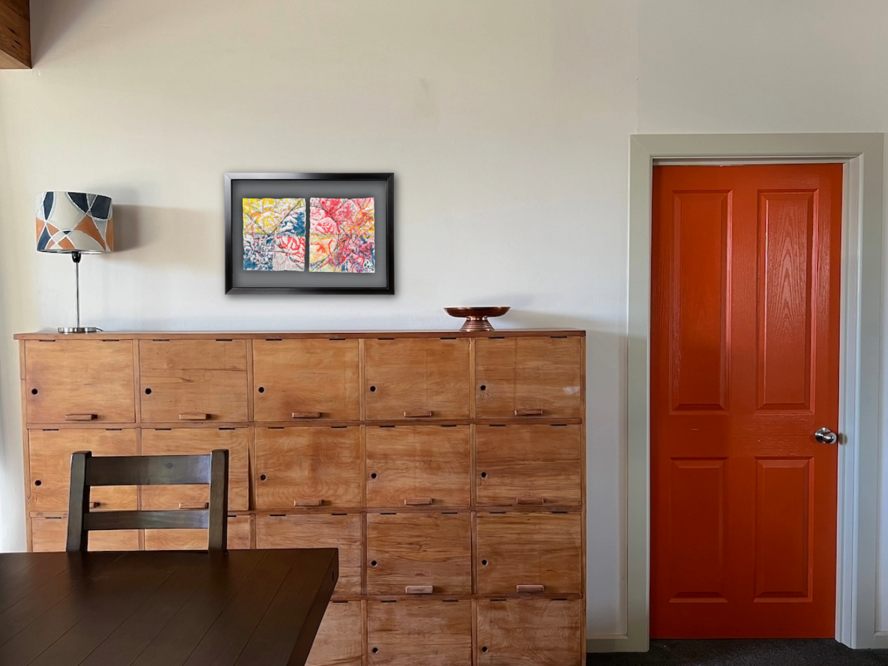 2. Send me a straight-on image of the wall space and nearby furniture where you wish to hang the work.
