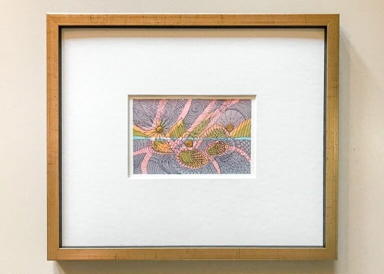 The Wabi Sabi collection arose from a period of restlessness alongside an awareness of impending change. In longing to return to my studio part-time, and, as a way to relax from running my business, in the evenings I’d layered Inktense and masking fluid repetitiously on small cards made of Fabriano paper. Outlining real and imagined shapes with pigment ink proved satisfying.