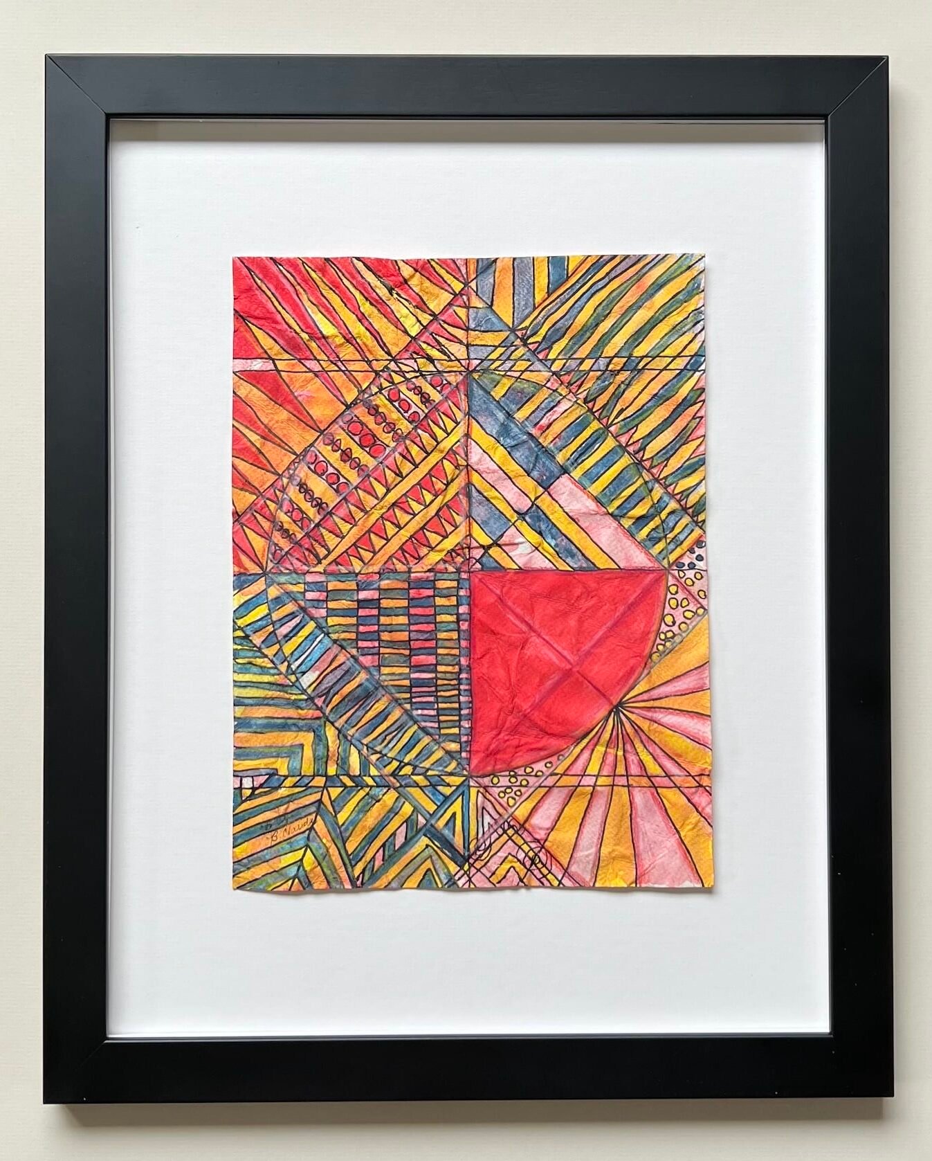 Let’s Paint the Town Red adds crackling, go-for-it texture and fun to your spaces. I made these works principally with Inktense and oil stick on really crunchy paper, for real punch. Thereby, resulting in set of works that are decidedly distinct from the other Red Playground derivatives.